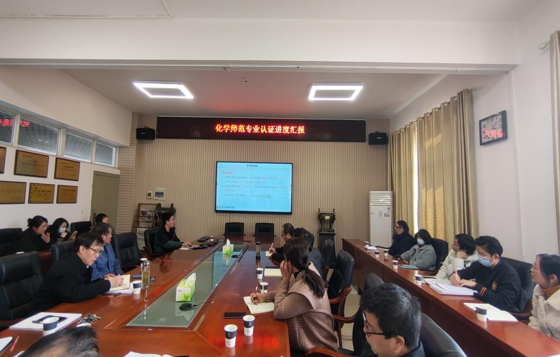 为推动公司专业建设,提升人才培养质量,确保化学师范专业认证工作有序推进,2023年2月27日下午,永利23411集团于14教西303会议室召开化学师范专业认证工作进展汇报。会议由化学系主任舒文明主持,颜学敏经理、吴爱斌副经理以及部分专任教师参加了此次会议。