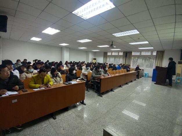 11月30下午,公司在14教北201召开会议,刘书记作“深刻把握党的百年奋斗重大成就和历史经验”为主题的形势政策专题报告。报告会由颜经理主持,全院一百余名教职工参会。