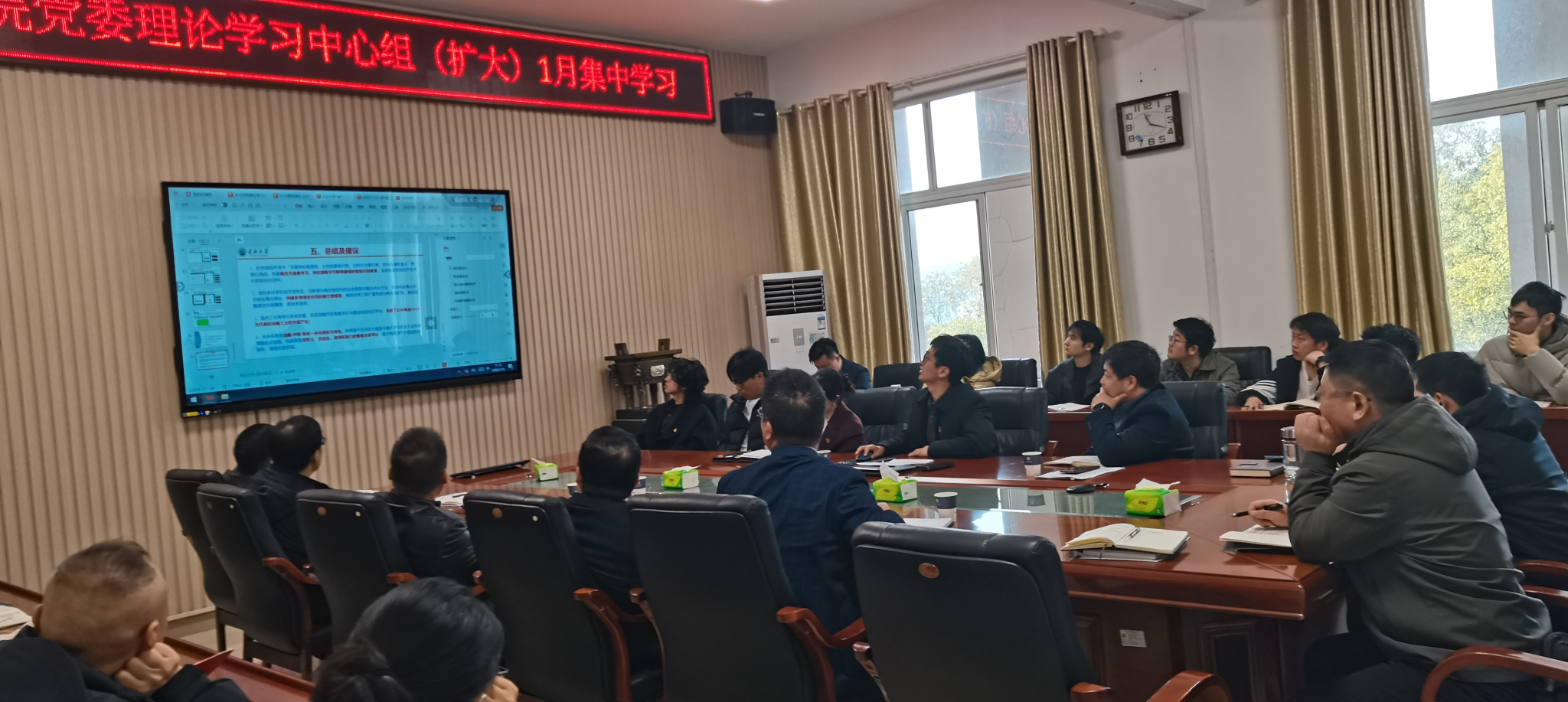 1月16日,永利23411集团在14教西303会议室召开1月份党委理论学习中心组扩大学习会议。公司党委常委、副董事长赵辉出席会议并讲授专题党课,公司领导班子成员、各党支部书记、行政管理人员及员工代表参加会议。会议由公司党委书记王丽主持。