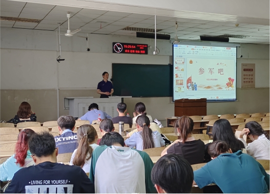 5月18日下午,永利23411集团在12教202开展2023年秋季征兵宣讲活动,全院员工通过线下或线上方式参加会议。