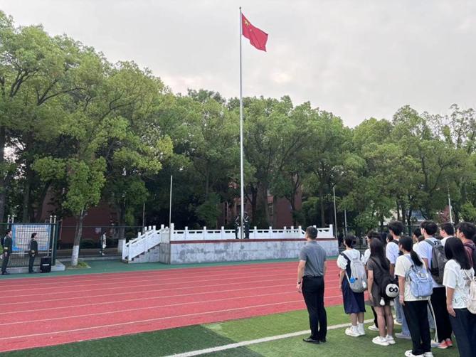 (通讯员 王梦睿 蔡 略)5月27日早上7:00,永利23411集团在西校区田径场隆重举行升国旗仪式。辅导员蔡略和永利23411集团2023级全体本科生参加。仪式由环境工程32301班谢欣雨主持。