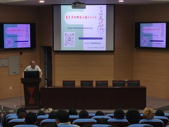 高材系主任曲宝龙老师向同学们介绍了高分子材料与工程专业的人才培养方案、发展前景等,高分子材料系有着一支高水平的教师团队,近年来共获批国家级纵向项目十余项,年均横向项目到款金额600余万,有着丰富的科研项目以及教学团队。米远祝老师指出,市场急需高分子材料与工程专业人才,希望同学们积极投身到高分子材料行业中,为行业发展添砖加瓦。