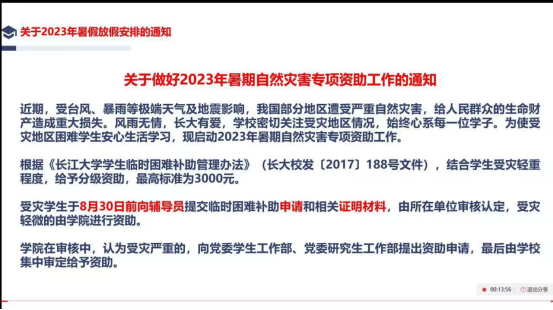 为使受灾地区困难员工安心生活学习,公司落实2023年暑期自然灾害专项资助工作,广泛宣传、加强精准资助,为受灾员工提供临时困难补助。