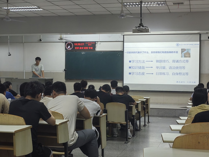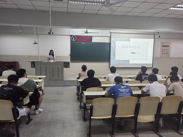 大会伊始,22级员工刘兴昊和吴佳丽向同学们分享自己备考经验,这两位员工均是大一没有通过四级,后来经过多次努力,最终通过四级的同学,他们分别从听力、阅读、翻译和作文等方面,向大家介绍自己的备考历程,强调了反复研读历年真题的重要性,通过熟悉考试高频词汇和易错点,开展有针对性地强化训练。