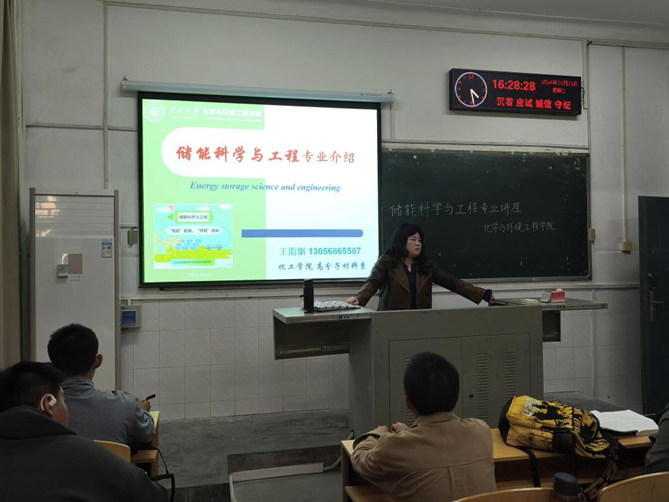 王脂胭老师向同学们介绍了储能科学与工程专业的人才培养方案和专业发展前景,表明储能科学与工程面向国家能源战略需求,清洁能源转换、储存与应用等领域人才需求量大,同学们要融合多学科知识,致力于创新储能技术,成为具有创新思维的研发与应用型人才。
