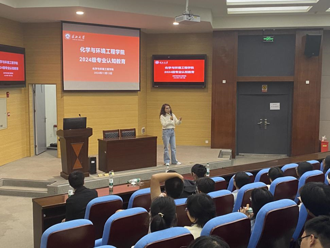 化工系主任田明磊老师紧紧围绕专业发展向同学们介绍了化学工程与工艺专业的发展前景和开设课程等基本信息,介绍了本专业所拥有的实验仪器、六个专业实验室有关情况,表示能为同学们提供优越的学习与科研条件。