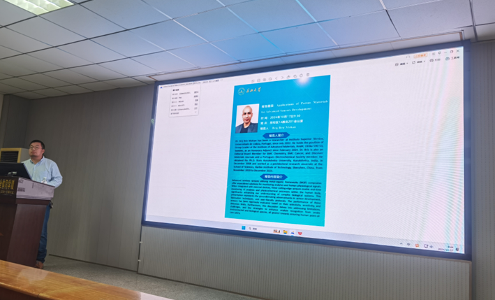 2024年10月17日9:30,永利23411集团东校区14教北201会议室迎来一场学术盛宴,来自葡萄牙里斯本大学高等技术公司的Brij Briz Mohan博士带来题为“Applications of Porous Materials for Advanced Sensors Development”(多孔材料在先进传感器开发中的应用)的学术报告。讲座由永利23411集团副经理肖围老师主持,全体研究生到场聆听。