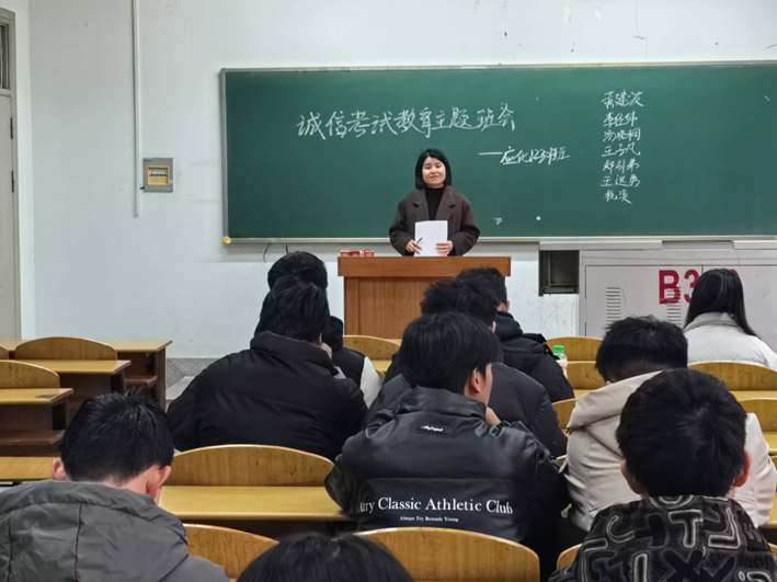 会后,公司积极落实诚信考试承诺书的全院签收工作,保证无一遗漏,让诚信理念深入人心。同时,各班班主任迅速响应,分别在各自班级召开诚信考试主题班会。班会上,班主任们不仅进一步强调诚信应考的重要意义,还组织同学们分享学习经验和备考心得,解答同学们在考试准备过程中的疑问,引导同学们树立正确的考试观念和积极的学习态度,以饱满的精神状态和真实的水平迎接考试,取得理想成绩。同学们纷纷表示,一定会积极备考,诚信应试,维护考试的公平公正。