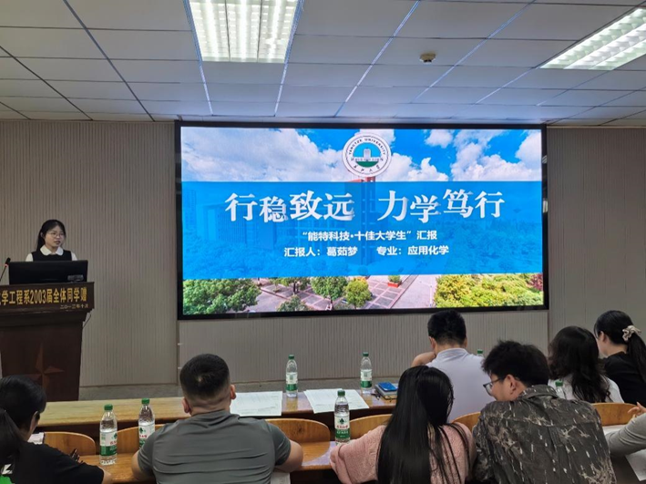 本次答辩旨在选拔出思想积极向上、学业成绩优异、勇于创新实践的高素质青年人才。答辩会上,2021级17位优秀学子依次围绕学业成绩、科研竞赛、思想品德、社会实践等方面,全方位展示了自身风采。他们之中,不少同学荣获过省级乃至国家级荣誉。在追求个人成长的道路上,他们紧跟党的步伐,有的深耕专业领域,立志为祖国发展贡献专业力量;有的积极投身“三下乡”“返家乡”社会实践活动,深入基层服务社会,他们的精彩展示赢得在场师生的阵阵掌声。