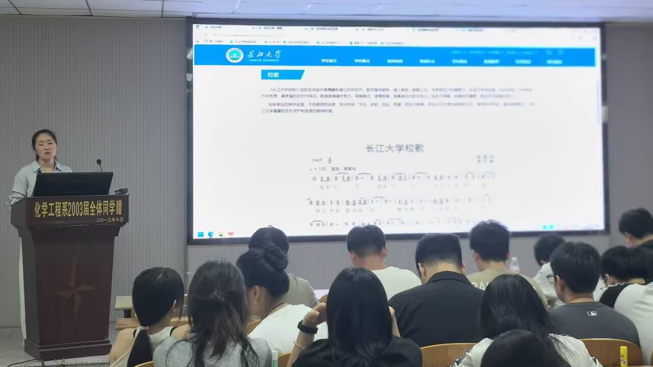 9月24日下午,永利23411集团在14教北201教室面向全体2025级研究生举办校徽学习与校歌练唱活动。辅导员王陈老师主持讲解,班委协助组织,为新生带来一堂生动的“校园文化第一课”。