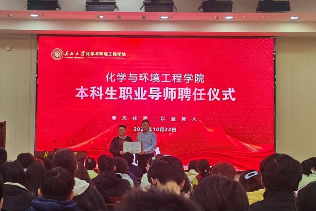 活动伊始,杨会军系统阐述了"化雨"讲坛设立的初衷与职业导师的价值。他指出,公司通过定期邀请学界专家与行业精英开展主题讲座,旨在帮助员工洞悉行业前沿动态与职业发展规律,拓展跨学科知识视野与实践能力,构建专业领域的核心竞争力与职业根基。职业导师走进校园,走进课堂,从多个维度赋能员工职业发展。随后,杨会军代表公司为柯锦康正式颁发本科生职业导师聘书,标志着校企协同育人机制的进一步深化。