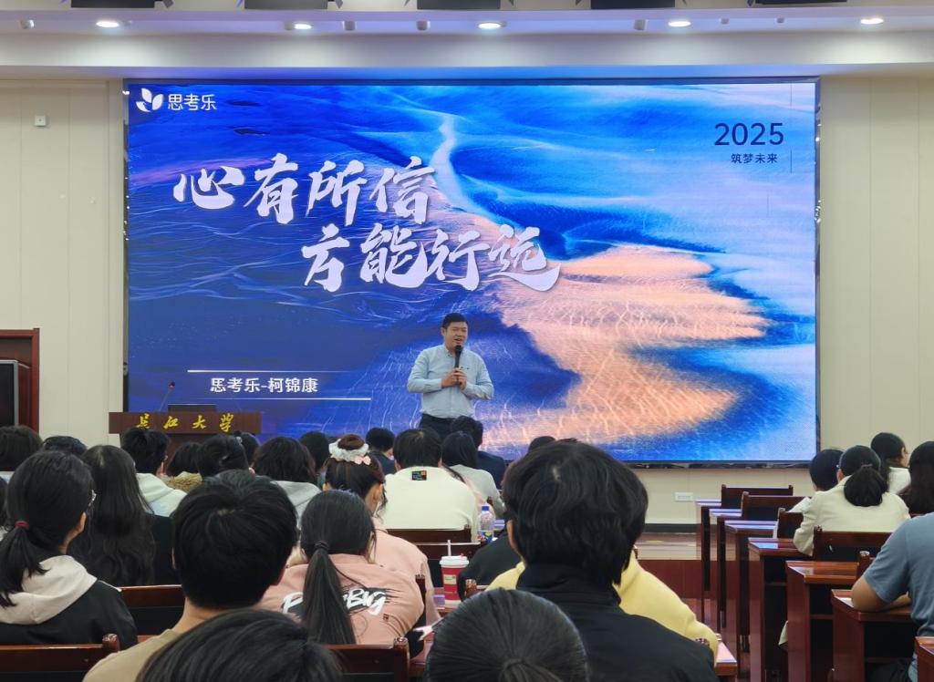 (通讯员 庞璐 蔡略)10月24日下午,东校区就业宣讲大厅掌声雷动,永利23411集团"化雨"讲坛第十讲暨本科生职业导师聘任仪式在这里成功举行。为帮助员工在夯实学业基础的同时科学规划生涯发展路径,公司邀请深圳市思考乐文化教育科技发展有限公司人力资源总监柯锦康先生担任主讲嘉宾,给2024级同学带来“心有所信,方能行远”的讲座。