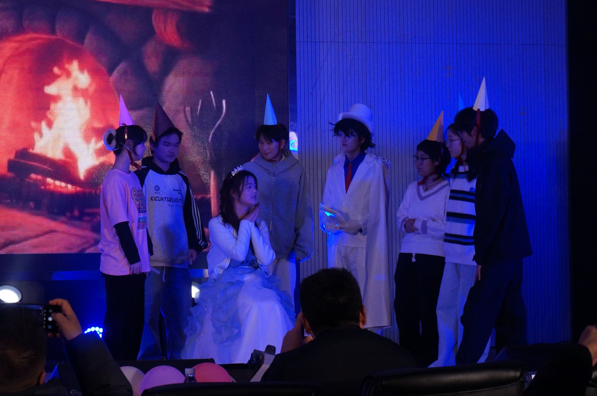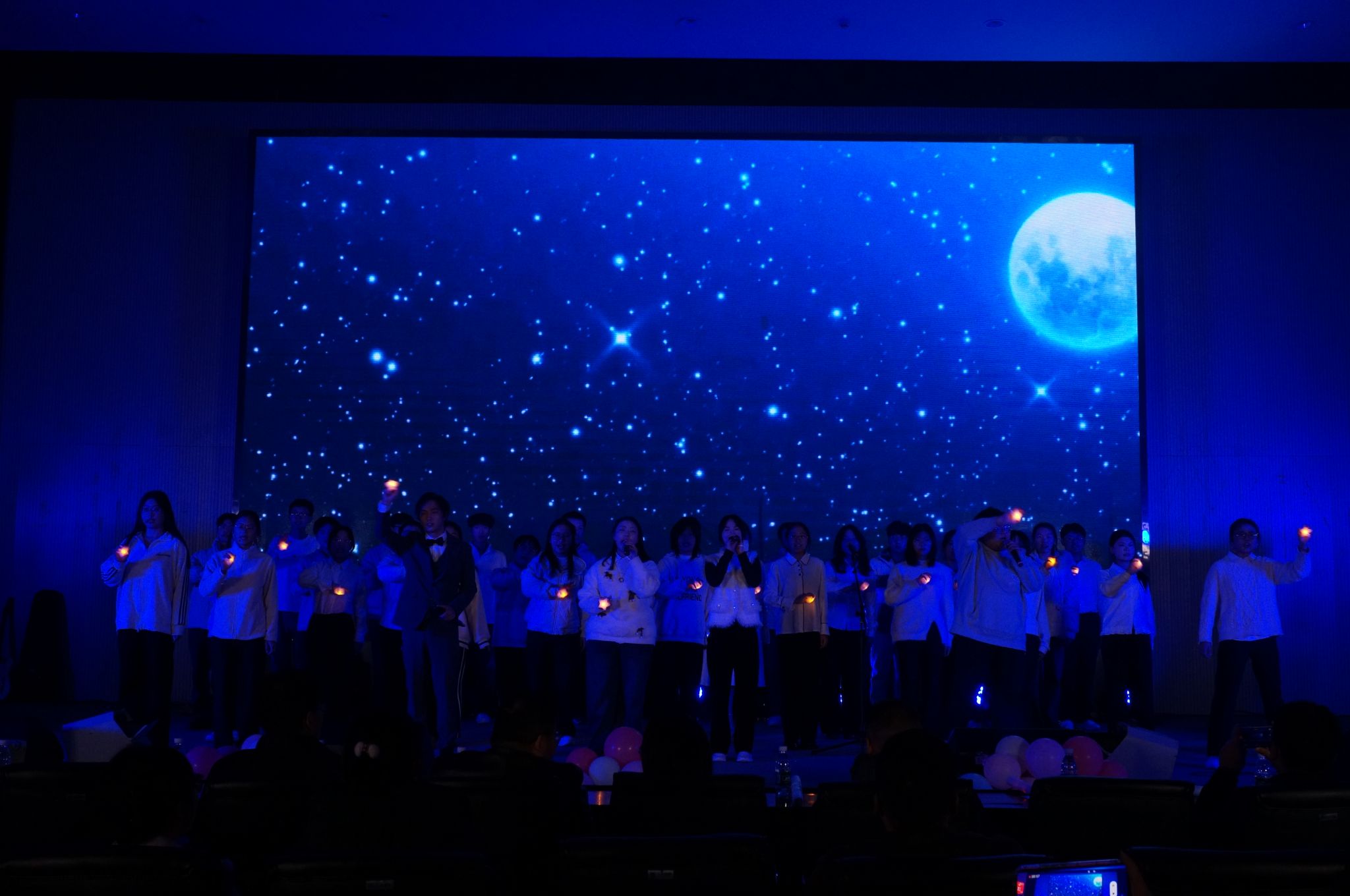 由员工会带来的朗诵《觉醒》铿锵有力、饱含深情,字里行间洋溢着青年学子的责任与担当;程紫菱、艾秦薇等同学演绎的舞蹈《寄明月》舞姿曼妙,古典韵味悠长,将观众带入诗意画卷。王珅珅、闵丽君合唱的《美丽的神话》深情款款,婉转的歌声诉说着动人故事。青支队、化昱班第二期全体成员带来的《夜空中最亮的星》,全体成员携手合唱,传递出同心筑梦、共赴新程的坚定信念,现场观众纷纷挥动荧光棒,晚会在温馨而热烈的氛围中落下帷幕。