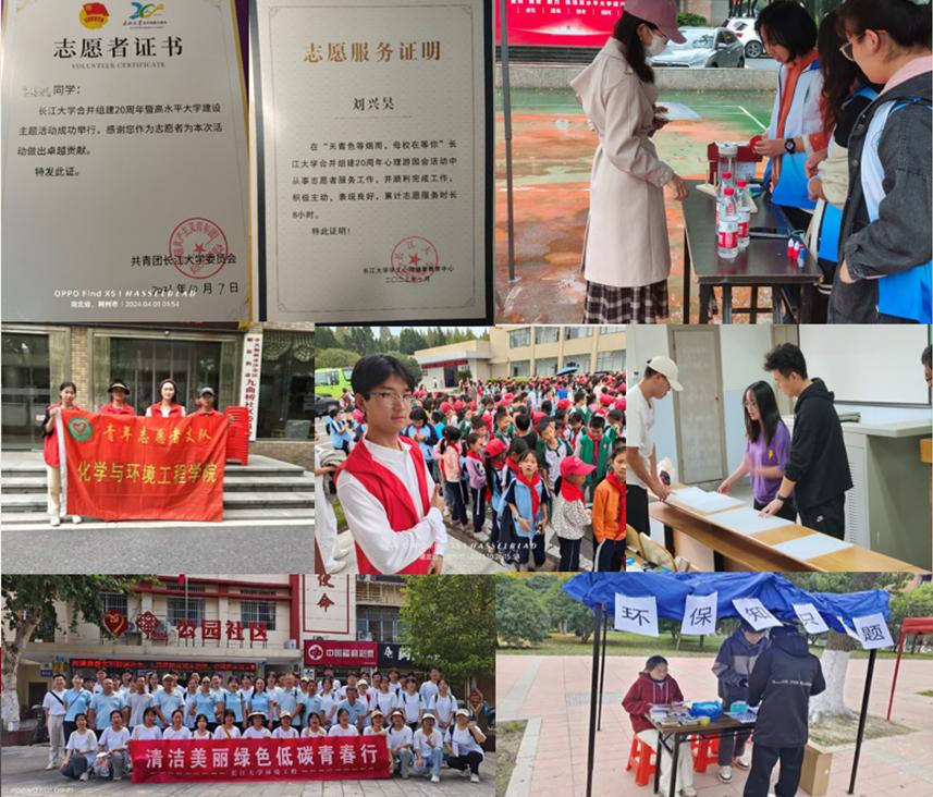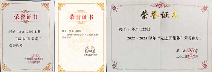 在科研创新方面,班级十余位同学进入老师课题组,参与校级大创项目4项、院级大创项目1项,曾获得湖北省第十六届化学(化工)创新成果报告会省二等奖、三等奖,中国老员工国际创新创业比赛校二等奖、三等奖等多项荣誉,目前3篇科技论文处于撰写阶段,1篇论文已录用,在社会实践方面,团支部引导团员青年积极投身社会实践与宣传工作,组织暑期“三下乡”实践活动、寒假社会实践活动,参与互联网+“红色青年筑梦之旅”活动并校级立项,与企业合作开展暑期实习实践活动。 在志愿服务方面,班级注册志愿者100%,依托第二课堂平台,团支部成员积极参加志愿实践活动,展现青春风采,创文值班、永利23411集团二十周年校庆志愿者、荆州马拉松志愿者、运动会、毕业晚会、炫彩跑等活动中处处可见环工12202团支部成员的身影。