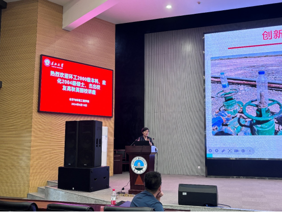 高秋英介绍了自己学习和成长经历,分享了自己在祖国边陲为油气环境腐蚀与防护勉事业做出的努力,向同学们讲述了梦想的重要性。她表示人因梦想而伟大,更因行动而成功,鼓励同学们要拿出勇气,拿出干劲,持续奔跑、不懈前进。她向同学们介绍了生涯规划的重要性,希望同学们利用好每一天的时间,从树立小目标开始,一点一点取得进步,为自己的学习和职业生涯打下坚实的基础。她勉励同学们热爱专业,学一行爱一行,专一行精一行,在自己的小天地展现大作为。