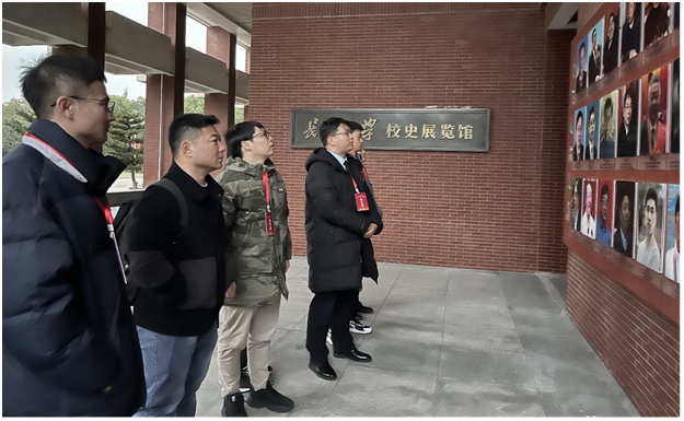 党委副书记杨会军带领博士们漫步校园,介绍了公司创新港建设情况,在校史长廊向博士们介绍了公司办学历史和优势特色。