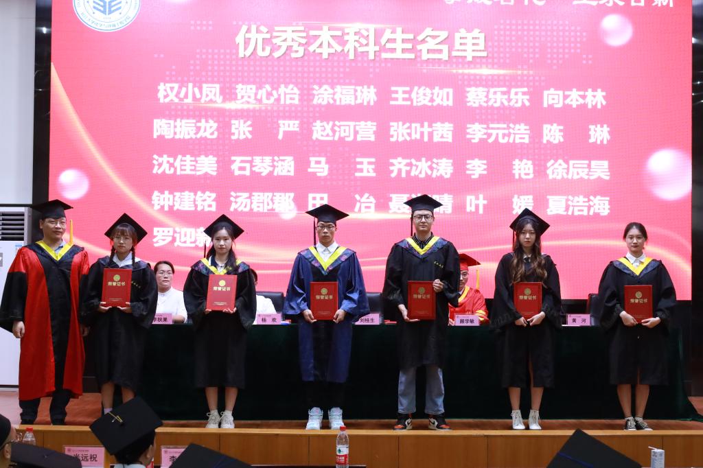 学位授予环节中,各系部主任为毕业生颁发学位证书,颜经理为现场的370名毕业生拨苏正冠,与大家合影留念。最后在两位毕业生的带领下,全体师生摇曳手中的向日葵,齐唱《送别》,典礼在悠扬的旋律中圆满落幕。
