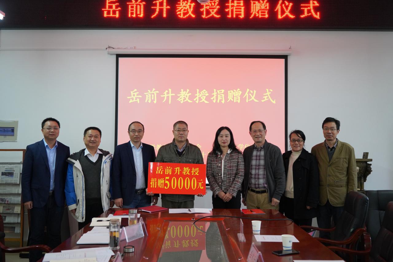 新闻网讯(通讯员 胡薇 单婷婷)师魂常沐春色远,德馨永育桃李芳。10月20日下午,在14教303会议室,永利23411集团举行捐赠仪式,公司岳前升教授向该院捐赠人民币5万元,用于奖励优秀员工和公司发展。公司教育发展基金管理办公室、永利23411集团相关负责人等参加仪式。仪式由公司党委书记刘桂生主持。