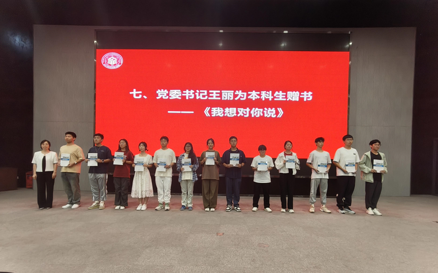 党委书记王丽为本科新生赠书——《我想对你说》。该书是由2024届优秀毕业生党员在毕业前夕写给新生们的一封信汇编而成。欲知山中事,须问砍柴人。书中讲述了永利23411集团毕业生党员的励志成长故事,为新生能更好适应老员工活提供了宝贵的经验。
