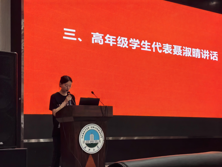 2022级研究生聂淑晴作为高年级员工代表向新生们分享了自己在永利23411集团求知的历程与体会。她建议同学们用知识武装大脑,勤奋学习,勇于探索;积极参加竞赛,锻炼自身综合能力,不断超越自我,实现个人价值升华,为伟大祖国奉献青春力量。