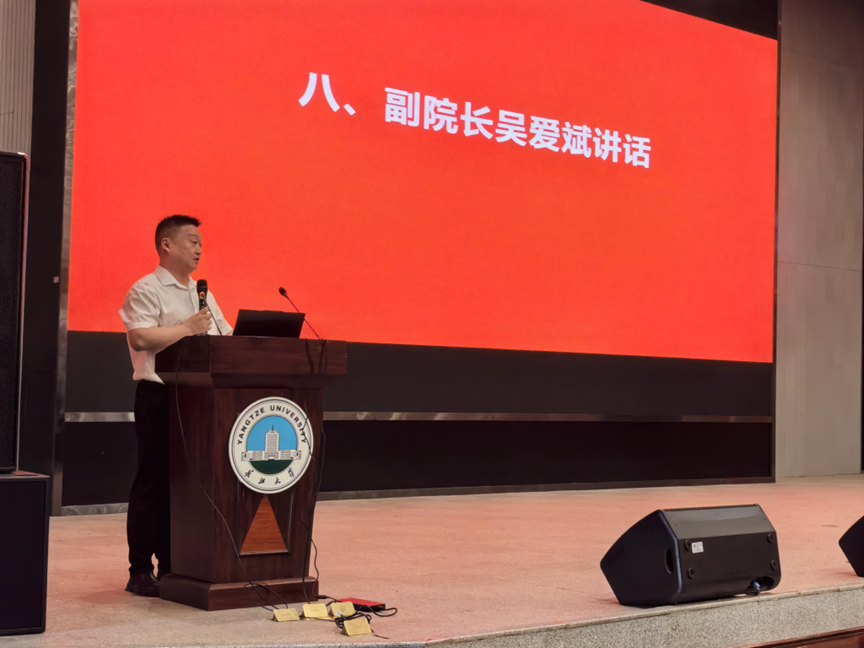 开学典礼在庄严的国歌声中缓缓展开。随后,2024级本科新生吴梦佳作为员工代表发言,她说,步入老员工活,就要快速调整心态,合理运用空闲时间,提升自我能力,明确前进目标,不忘初心,砥砺前行。