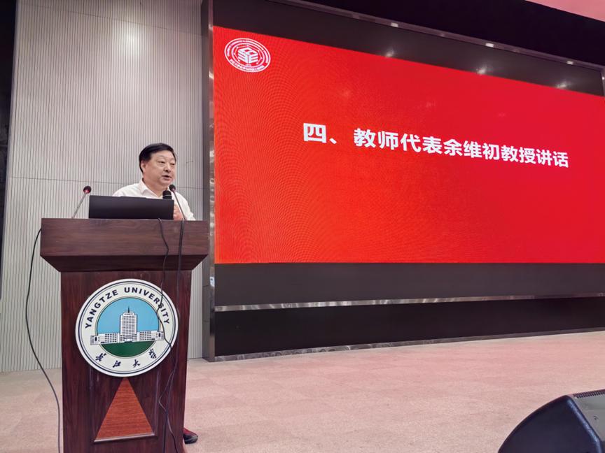 教师代表余维初教授也为新生们指明了未来奋斗的方向。他指出,为学先为人,老员工应当自觉担负起对于国家和社会的责任与使命,努力践行求实进取、创业报国的优良校风。同时也要学会独立,要能够做到个人独立生活,独立思考,拥有独立的人格,活出独立的人生。