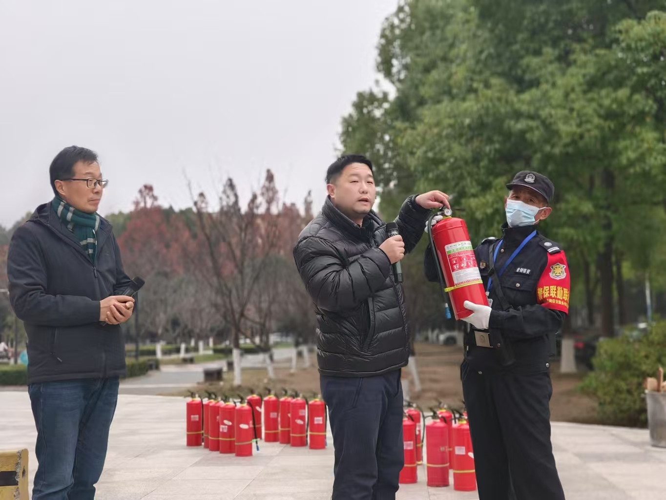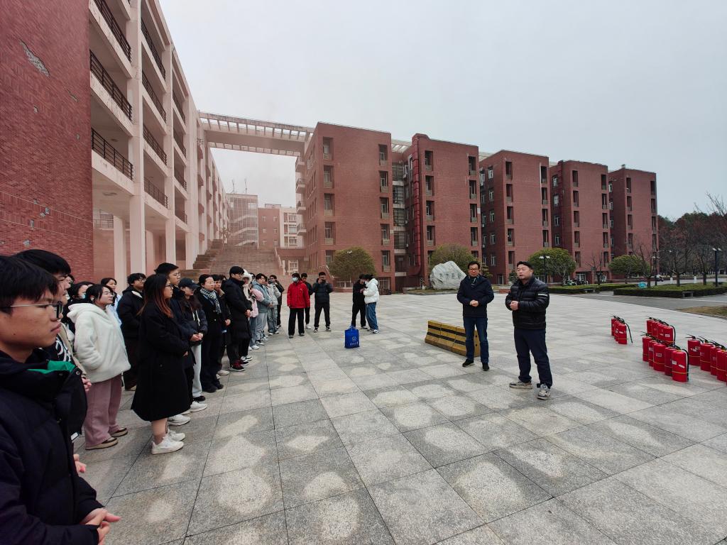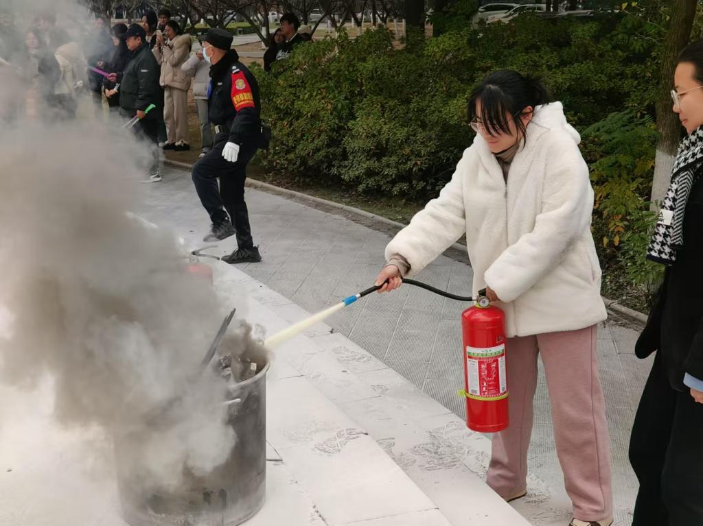 灭火演练环节,万杨主任结合实际案例,深入讲解火灾预防、逃生技巧以及灭火器等消防器材的正确使用方法,并进行现场示范。在保卫处人员的指导下,师生们积极上手操作灭火器灭火,切实掌握了消防器材的使用技能,深刻体会到消防安全的重要性。
