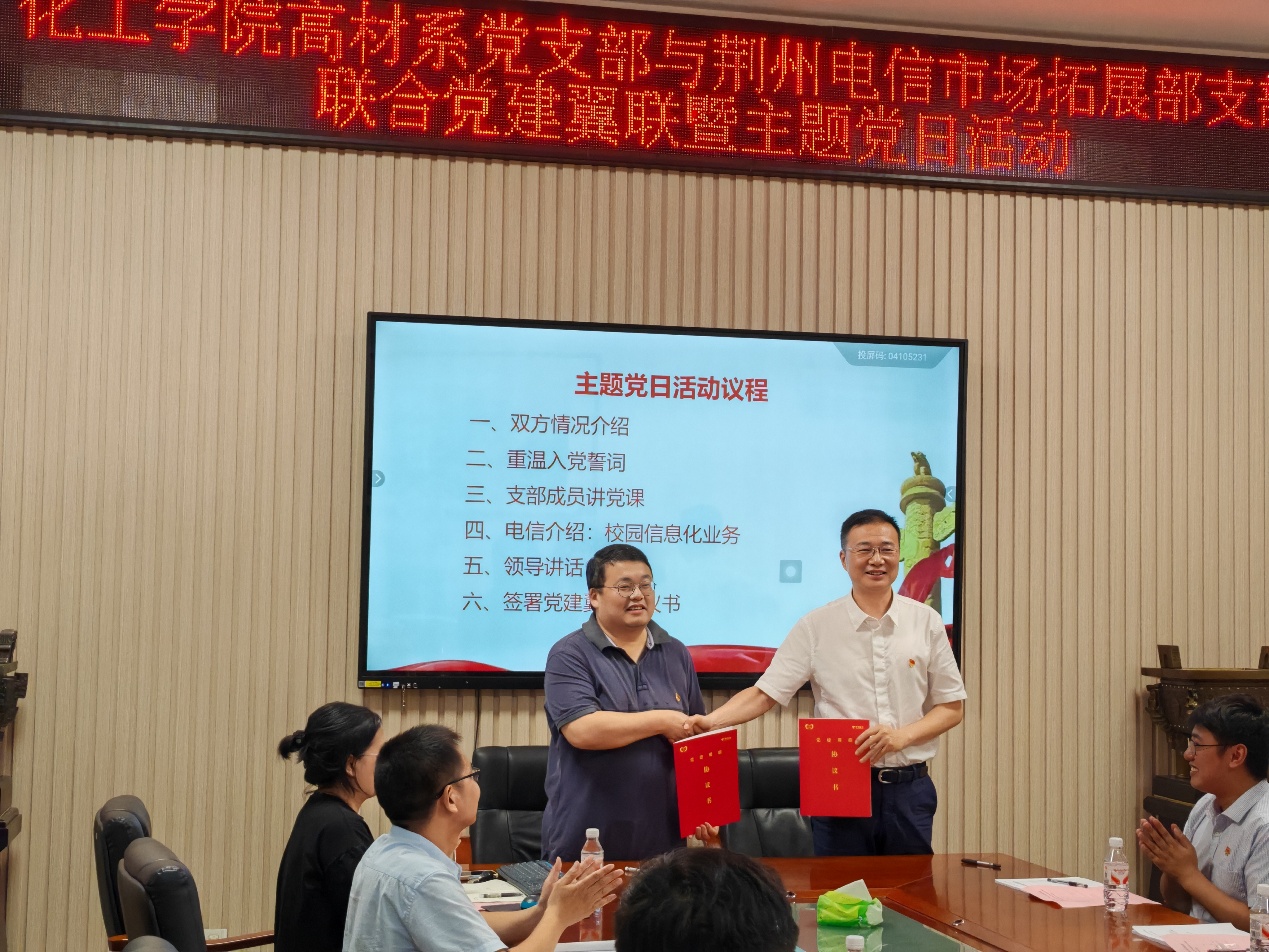 5月22日下午,湖北省高校“双带头人”教师党支部--永利23411集团高分子材料与工程系党支部与中国电信荆州分公司市场拓展部党支部联合举行党建翼联主题党日活动,通过组织共建推动党建与业务双融双促。双方党支部书记肖围、杜海和21名党员出席活动。活动由湖北省高校“双带头人”教师党支部副书记李传华主持。 活动通过"四个一"环节展开深度交流:组织共建环节,双方通过支部互相介绍加深了对彼此组织建设、业务特色和党建成果的系统认知;思想共学环节,全体党员面向党旗庄严宣誓,以重温入党誓词强化党性修养;专题共研环节,湖北省高校“双带头人”教师党支部宣传委员张春燕同志作《坚持自立自强 突出应用导向 推动人工智能健康有序发展》专题党课,通过剖析AI技术前沿动态与产业应用场景,激发党员立足专业岗位推进科技创新的使命感;业务共促环节,荆州电信市场拓展部党支部王子徽系统展示了中国电信教育信息化解决方案,重点解析了5G+智慧校园、教育大数据平台等数字化实践成果,并结合荆州电信与永利23411集团实施案例进行了分析解读。 双方支部书记在总结讲话中指出,此次联建开创了校企党组织"理论联学、资源联享、发展联促"的新模式,后续将建立"组织联建、活动联办、人才联育"的常态化机制,切实把党的政治优势转化为发展动能。活动最后,双方正式签署《党建翼联合作协议》,约定通过定期开展技术研讨、项目合作、人才交流等多元化共建形式,共同探索"党建+业务"融合发展的创新路径。 此次共建活动既包含理论武装的思想淬炼,又注重实践层面的业务对接,通过搭建校企协同创新平台,为教育信息化建设与新材料研发应用领域的深度合作奠定了坚实基础。同时也是全国高校“双带头人”教师党支部书记“强国行”专项行动走深走实的重要环节。 (审核:肖围;编辑:王志权)