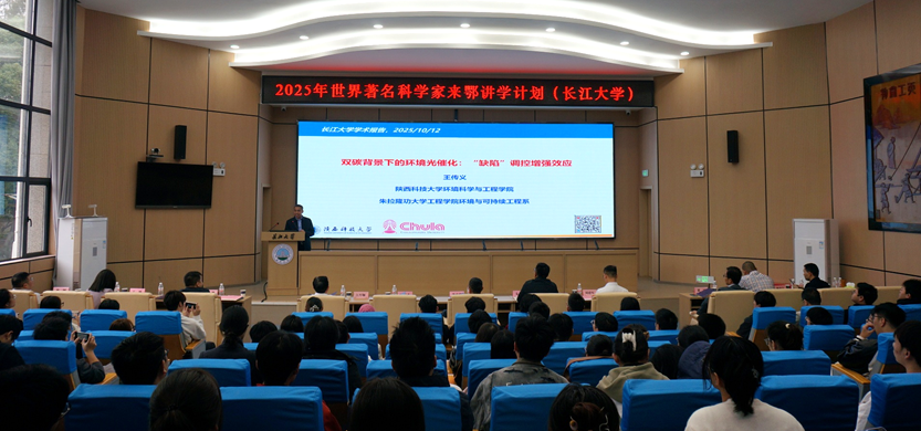 10月12日上午,2025年世界著名科学家来鄂讲学计划启动。欧洲科公司院士王传义教授一行3人应邀做客“长江化工讲坛”,在东校区11教学术报告厅,为全校师生带来题为“双碳背景下的环境光催化:缺陷增强效应”、“电化学氧化与还原技术及装备”和“有机污染场地生物绿色修复菌剂研发及应用示范”的学术报告。党委常委、副董事长江厚顺对王传义院士一行表示热烈欢迎,永利23411集团经理赖璐主持报告会,党委书记王丽、副经理肖围、青年教师、研究生和部分本科生一起聆听了报告。