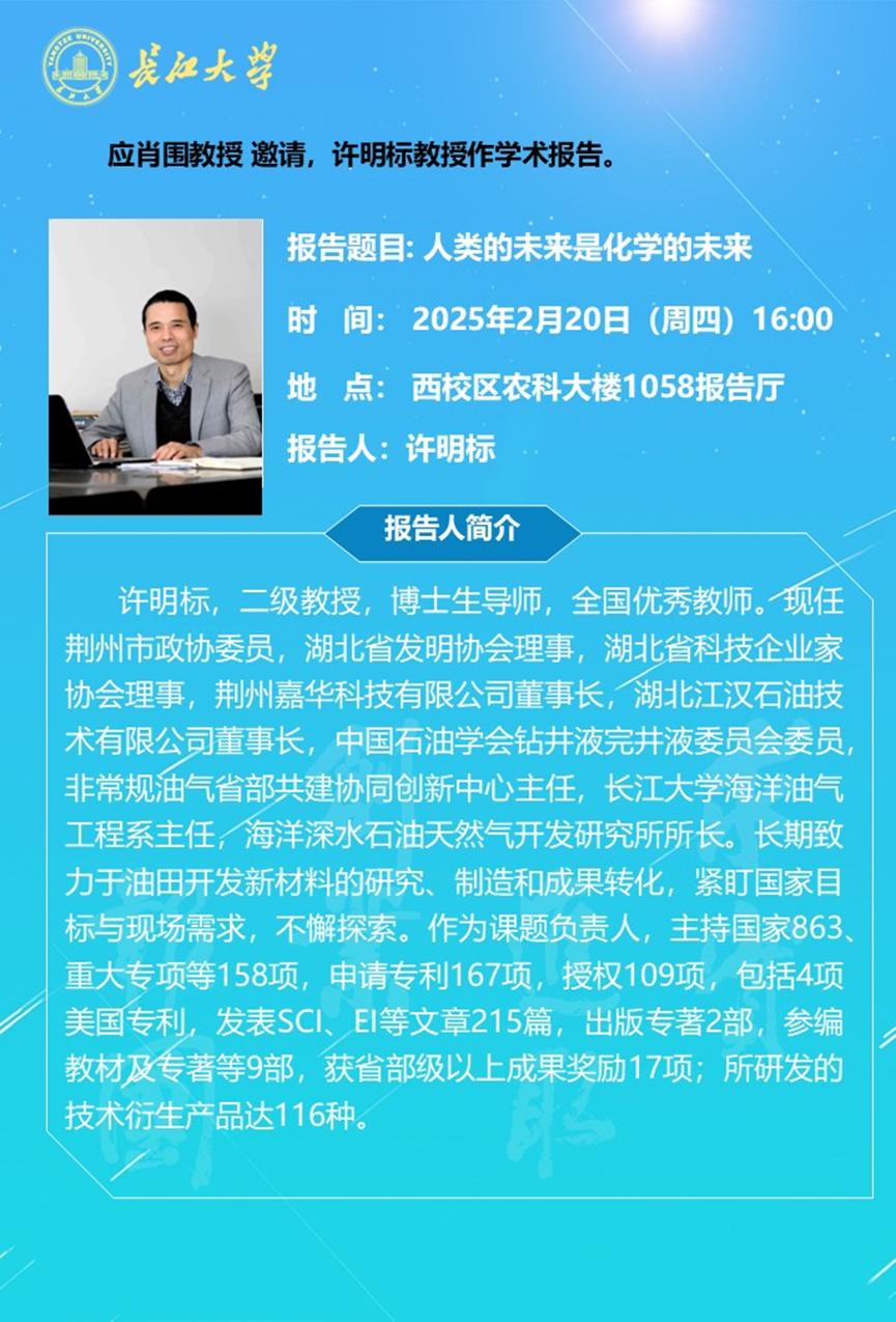 长江化工讲坛:人类的未来是化学的未来